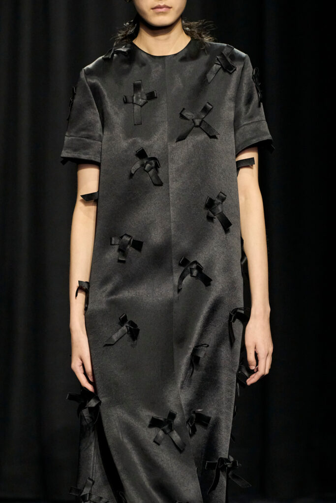 Da Jil Sander invece i fiocchi sono mini, applicati sugli abiti lunghi in raso come dettaglio super chic. Una pioggia di piccoli fiocchi che rende molto speciale un abito dalla silhouette basic. Questa è certamente un’idea da copiare, per chi è brava a ricamare non è neanche una prova troppo difficile.